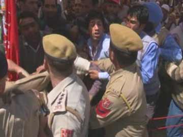Mr Abdullah was campaigning in Rafiabad in north Kashmir when a young man got up and started shouting during his speech. In footage, the state's Higher Education Minister, Mohammad Akbar Lone, was seen slapping him.