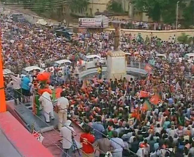 Narendra Modi, the BJP's prime ministerial candidate, is driving through Varanasi, the huge crowds providing a show of strength at a time when his party has alleged that the Election Commission wrongly disallowed him from holding a rally in the heart of his constituency. (See Pictures)