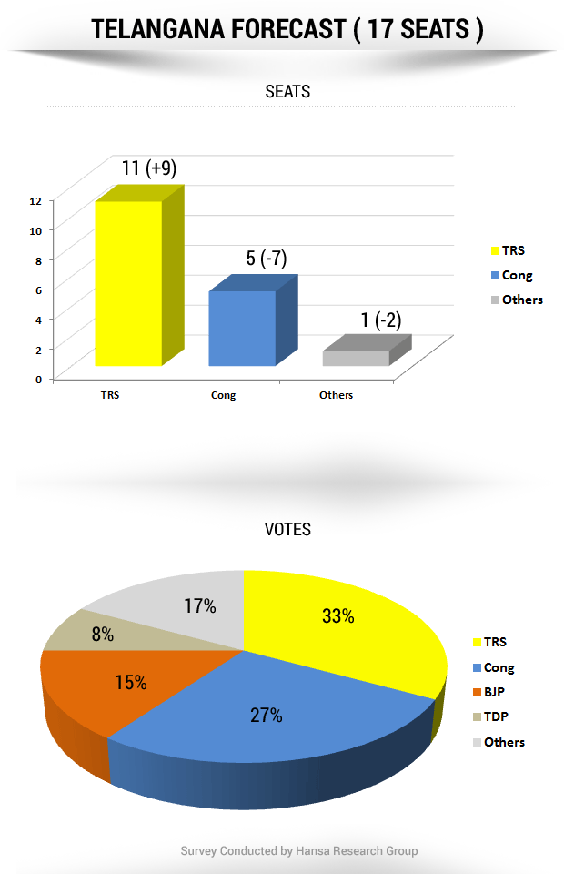 Telangana, to officially be born as India's 29th state on June 2, will express its thanks to K Chandrasekhar Rao or KCR by giving him 11 of 17 parliamentary seats, according to NDTV's opinion poll.