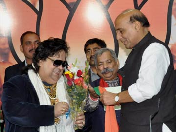 Bappi Lahiri greeted by BJP president Rajnath Singh in New Delhi on January 31, 2014.