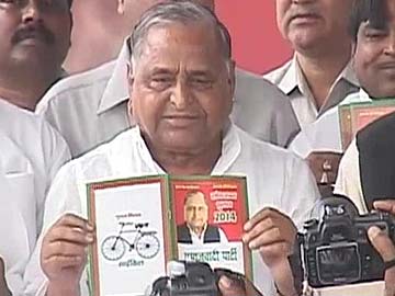 Samajwadi Party Chief Mulayam Singh Yadav with the party manifesto.