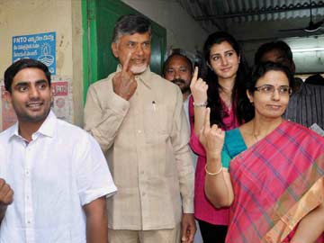 TDP leader N Chandrababu Naidu along with his wife N Bhuvaneshwari and other family members after casting their votes in Hyderabad on April 30, 2014.