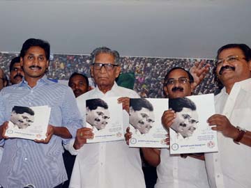 YSR Congress chief Y S Jagan Mohan Reddy with party leaders releasing Party Manifesto in Hyderabad