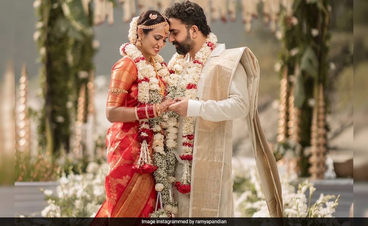Ramya Pandian, known for her appearances on Cooku with Comali and Bigg Boss Tamil 4, shared glimpses of her wedding on Saturday. The Tamil actress married yoga instructor Lovel Dhawan in an intimate ceremony held on the banks of the Ganges river. A video posted by the actress features highlights from the wedding. We can see the bride in a stunning red saree with golden embroidery. She also wore heavy gold jewellery that gave her a goddess-like appearance. Lovel complemented her perfectly in an off-white ethnic outfit. Sharing the video, Ramya wrote, “Sharing the video, Ramya wrote, “Under the gaze of the Himalayas, by the sacred Ganges, and with the blessings of Shiva and Parvati, we vowed our forever. Dev Bhoomi, you gave me the greatest blessing of all. Feeling beyond grateful to start our new chapter here.”