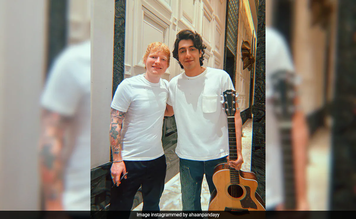 Ahaan Panday, who is all set to make his big Bollywood debut soon, recently met singer Ed Sheeran and documented the moment on social media. Ahaan posted pictures with the Shape Of You singer and and a video of the singer signing his guitar. Ahaan Panday captioned the post, "Been prepping on this guitar for my debut film and now I have it bless-Ed by none other than Ed Sheeran." Ahaan is the cousin of actress Ananya Panday (and son of Chunky Panday's brother, Chikki Panday).