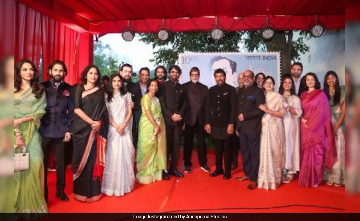 Ahead of wedding, Sobhita Dhulipala and Naga Chaitanya are making all the right noises. The bride-to-be posed with Naga Chaitanya and the Akkineni family for a grand photo-op at the ANR National Awards held on Monday. In the group picture, Sobhita can be seen posing with Naga Chaitanya, his extended family, Chiranjeevi and Amitabh Bachchan. Sobhita wore a green saree and kept her tresses loose. Naga Chaitanya complemented her in a bandhgala. The pictures were shared by Annapurna Studios on its Instagram handle. The caption read, "The Akkineni Family with the legends - @amitabhbachchan Ji & @chiranjeevikonidela Garu at the #ANRNationalAward2024 ceremony." Take a look: