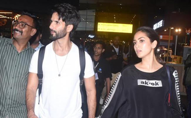 Shahid Kapoor and wife Mira Rajput, guests at Kiara Advani and Sidharth Malhotra's wedding, were pictured flying back to Mumbai on Tuesday night. Shahid and Mira were photographed at Mumbai airport – he was casually dressed in jeans and a white tee, she in a black track suit. They flew into Mumbai from Jaisalmer where Kiara Advani and Sidharth Malhotra married at the Suryagarh Palace resort earlier in the day. The wedding was attended by close family and friends only. Shahid Kapoor and Kapoor and Kiara Advani co-starred in 2019 hit Kabir Singh.