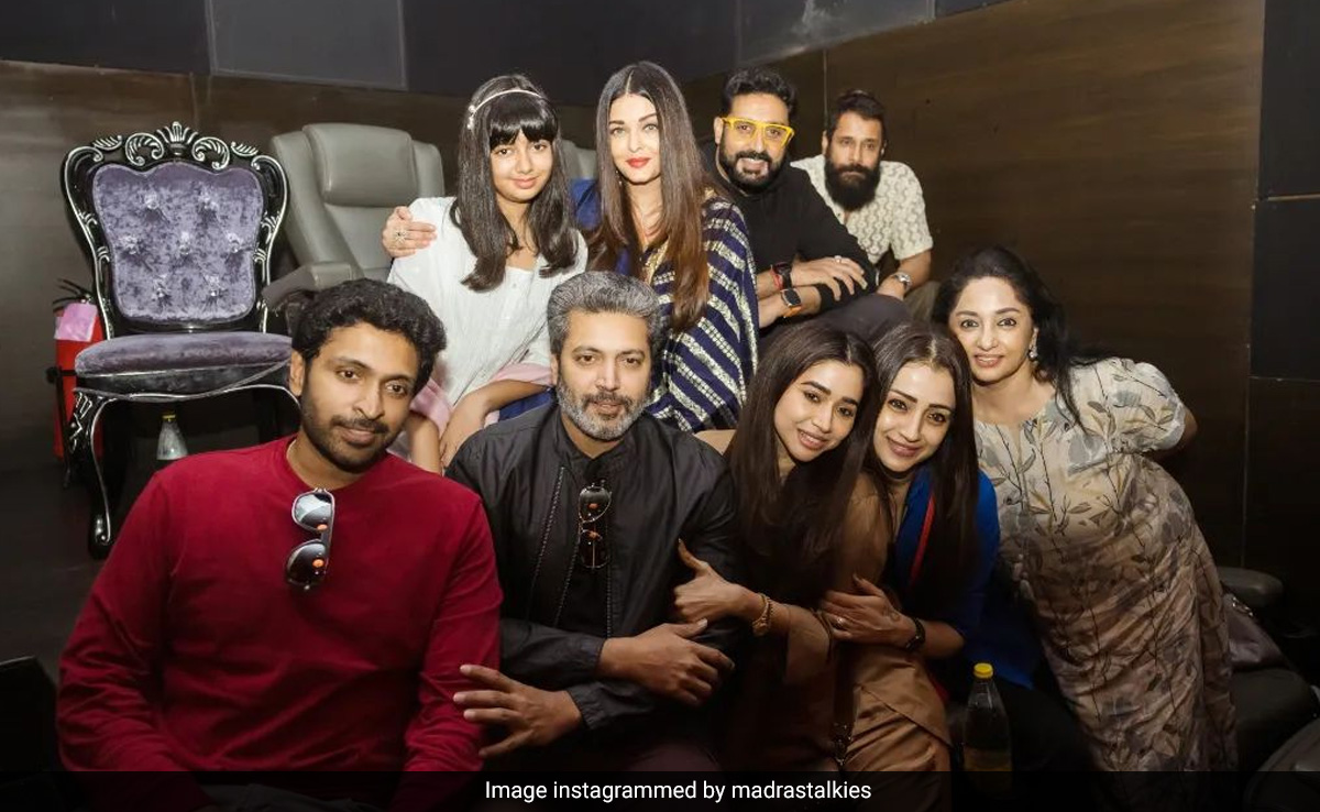 Just after the release of their film, Ponniyin Selvan -2 stars united to watch their film at a theatre in Chennai. A couple of photos from the film's screening were shared on the official Instagram handle of Mani Ratnam's production house Madras Talkies, which has backed the magnum opus. The pictures feature Aishwarya Rai Bachchan along with husband Abhishek Bachchan and their daughter Aaradhya. The pictures also feature Aishwarya's PS-2 co-stars Vikram, Trisha and Jayam Ravi. Karthi, Sobhita Dhulipala are MIA from the pictures. The caption on the post read, "Cholas are back together to watch and celebrate #PS2 #CholasAreBack."