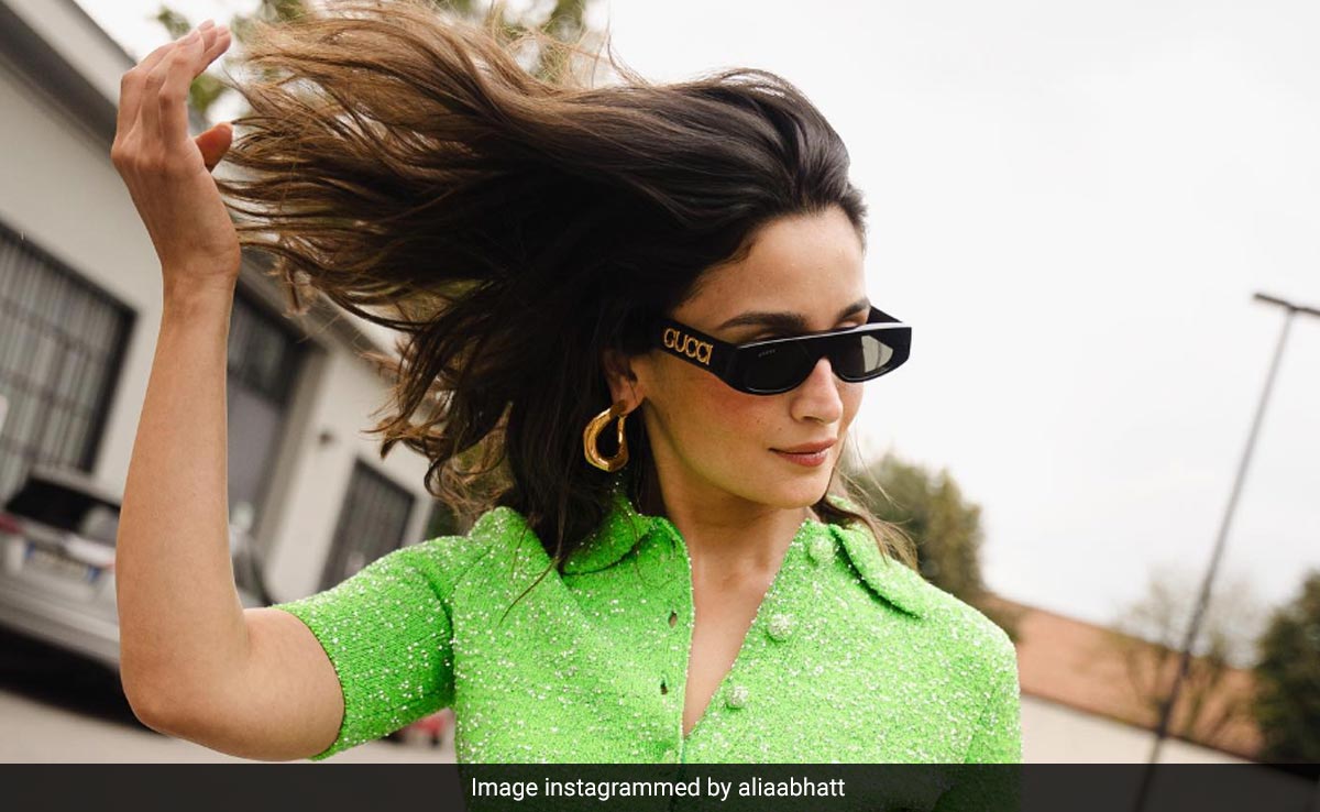 Alia Bhatt is in Milan for the Gucci Ancora Spring/Summer 2024 show. After a series of chiffon saree uploads, the actress has now gone back to casually chic for her Italy trip. Alia's personal style got “guccified” as she opted for an embellished neon green top from Gucci's Spring-Summer collection. It was paired with flared denims. Alia Bhatt is the global brand ambassador of Gucci. Sharing a bunch of images from her photoshoot, Alia captioned it: “Personal style but guccified…Gucci…Ancora Gucci…Sabato De [green heart].” FYI: Gucci Ancora marked Sabato De Sarno's debut as the creative director for the Italian luxury fashion house.
