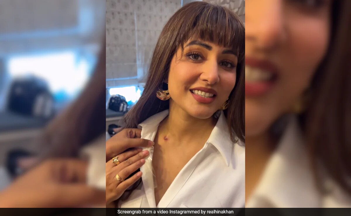 A few days ago, Hina Khan shared a video in which she can be seen getting ready for her "first work assignment" after her first chemotherapy session. She is getting her makeup done with a wig on her head. In the video, she says, "This is my first shoot after my first chemo session. Nervous, trying to hide stitches as much as we can. Everyone is trying to make an effort. I have put a wig on with fringes. Thoda sa dikh raha hai [it's showing a bit.] Will manage. I am all set for my first shoot. The show must go on. We will fight it. We will keep shooting. We will win."