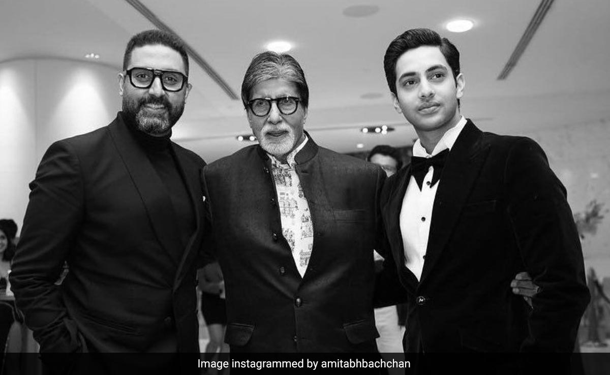 On the premiere night of his grandson Agastya Nanda's debut film The Archies, the entire Bachchan and Nanda household gathered to show their support. Amitabh Bachchan also shared a picture from the fantastic night on Instagram. In the black and white snapshot, the trio - Big B, Agastya, and Abhishek Bachchan - look dapper in black attire. Along with the picture, Amitabh Bachchan wrote, “Agastya with love and more…Shine sway you are Rizz !!!” accompanied by thumbs-up emojis. Replying to the post, Shweta Bachchan said, “Hahahahahahaha.” Navya Naveli Nanda posted red hearts.