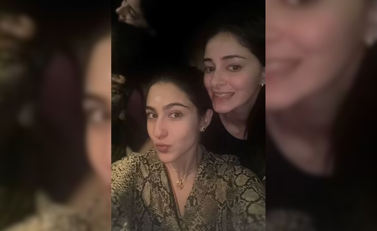 Ananya Panday's latest Instagram entry is setting BFF goals. The actress reshared a fun photo originally posted by Sara Ali Khan. In the picture, Sara is seen taking a selfie, while Ananya is flashing her million-dollar smile. Sara is dressed in a printed outfit, while Ananya rocks a chic black ensemble. The hashtag "Saturday" suggests that the duo was enjoying a weekend party together. Check out the image posted on Ananya Panday's Instagram Stories below: