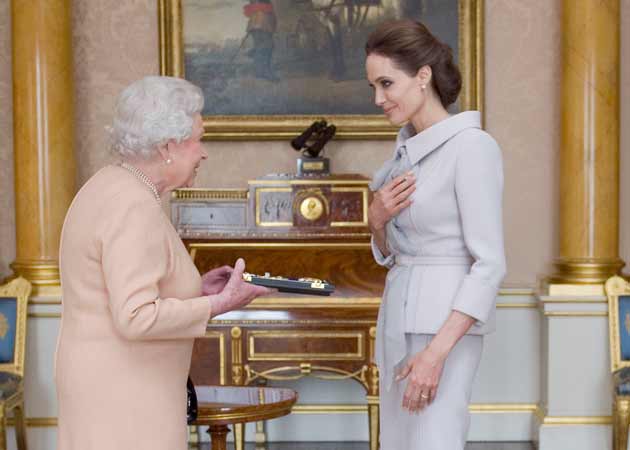 Actress Angelina Jolie received her Honorary Damehood from Britain's Queen Elizabeth II today.