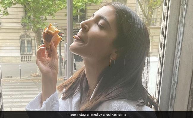 Anushka Sharma, who is currently holidaying in Paris with her husband Virat Kohli and daughter Vamika, has shared new pictures on her Instagram handle, enjoying croissants. In the images, Anushka looks pretty in a white bathrobe, relishing croissants sitting by the window with a cup of coffee. Sharing the pictures, the actress captioned it as "When is Paris .. eat many croissants". Soon after she shared the post, Parineeti Chopra commented, "Send me some to London. Thanks and regards". The actress has shared a similar photo on her Instagram stories with a different caption that read, "Being very Parisian here...breakfast of coffee and croissant was devoured".