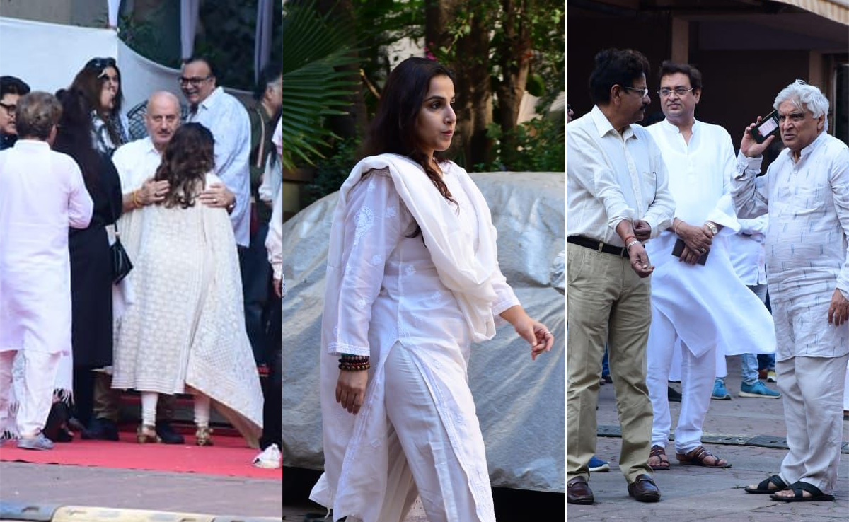 Bollywood actresses to the likes of Vidya Balan, Padmini Kolhapure and Tanvi Azmi were clicked outside the residence of Satish Kaushik. Actress Rituparna Sengupta was also seen making an appearance.