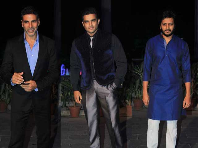 Actors Akshay Kumar, R Madhavan and Riteish Deshmukh arrived solo for the reception.