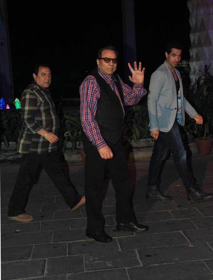 Actor Dharmendra waved at the paparazzi.