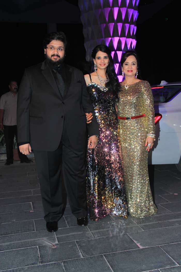 Newly-weds Rahul and Aditi happily posed for the cameras with Smita Thackeray, who looked gorgeous in a gold outfit.