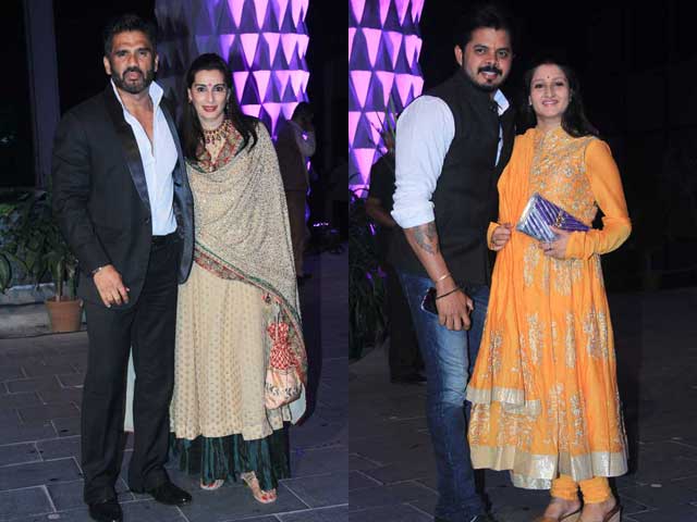 Actor Suneil Shetty and former cricketer Sreesanth attended the reception with their better halves.