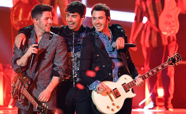 The JoBros incorporated a couple solo hits into their first televised performance together in more than a decade: Nick started with Jealous, and then joined Joe for DNCE's Cake By the Ocean. Then Kevin appeared, as the trio all came together for "Sucker," their new single that recently topped the Billboard chart. (Of course, Nick stopped mid-song to kiss his wife, Priyanka Chopra, in the audience.)