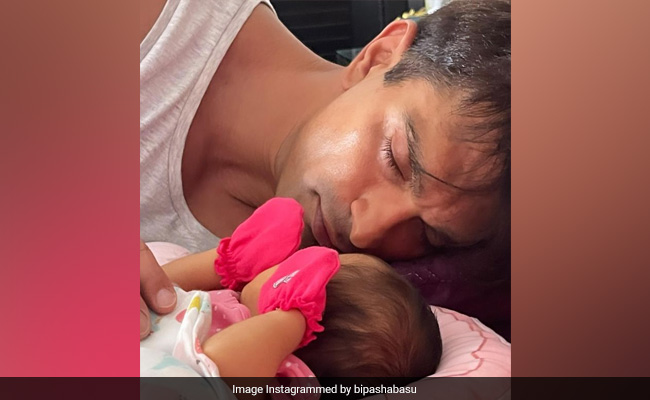 New mom Bipasha Basu has treated her Insta family to an aww-dorable picture for her daughter Devi and husband, Karan Singh Grover. In the image, we can see the father-daughter duo enjoying a nap. Devi is seen sporting a pink outfit with matching mittens. Sharing the post, the actress wrote, "This is love. My heart... Karan Singh Grover & Devi. #fatherdaughter #monkeylove #grateful #blessed #durgadurga #newparents" Soon after she shared the post, her industry friends flooded the comment section. Arti Singh dropped love-struck emoticons and wrote "deviiiiii," while others dropped heart emoticons.