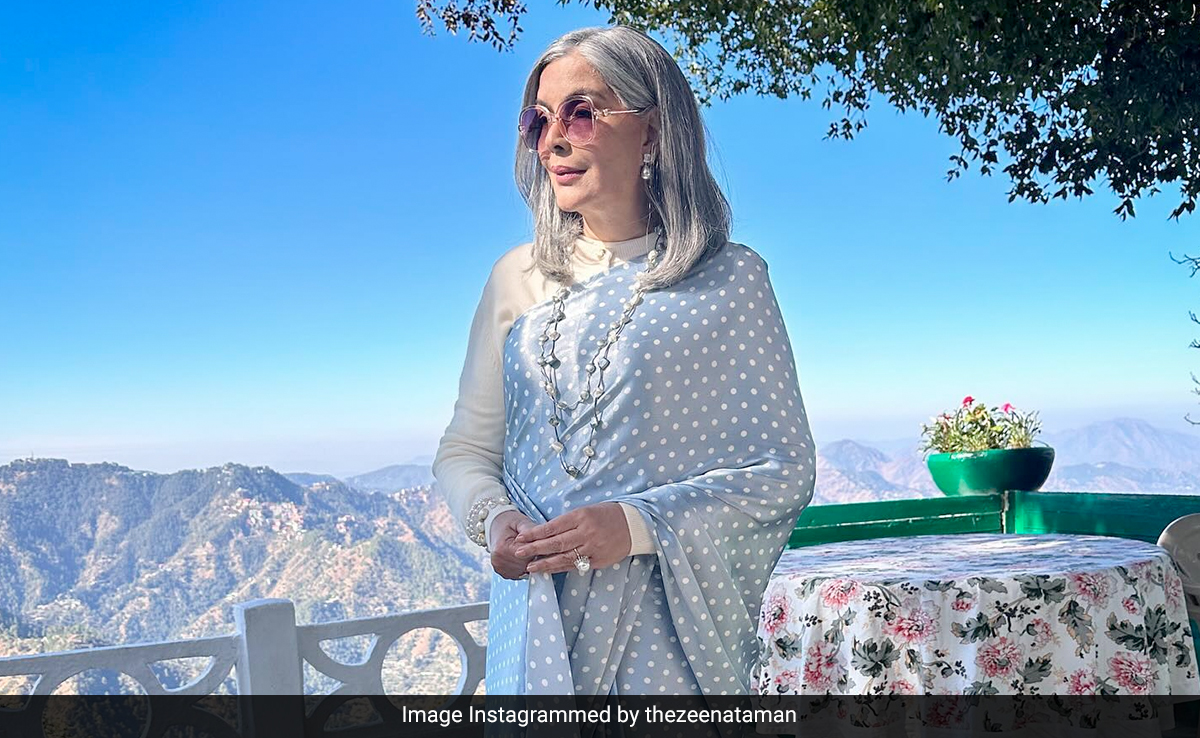 Drop everything and rush straight to Zeenat Aman's Instagram page. The veteran actress has shared an oh-so-gorgeous picture of herself. In the pic, Zeenat Aman is seen in a powder blue saree with white polka dots. The full-sleeved blouse and her signature shades have sealed the look. Don't miss the breathtaking backdrop. The picture was clicked on the sets of Bun Tikki in Shimla. Zeenat Aman is all set to make her comeback with the Faraz Arif Ansari film. The actress, in her caption, mentioned how the role, Sitara Jaan, in Bun Tikki has “rekindled” her love for sarees. The 72-year-old wrote, “The weather was cold but the atmosphere was warm this past week in Shimla. I've been shooting for ‘Bun Tikki' and it is a sheer pleasure to work with such a gracious cast and crew. Long hours, interesting role, mountain views, beautiful costumes… life really can come full circle it seems. I was doing just this in my twenties! Here's a glimpse of the elegant Sitara jaan, a character who, amongst other things, has rekindled my love for saris.”