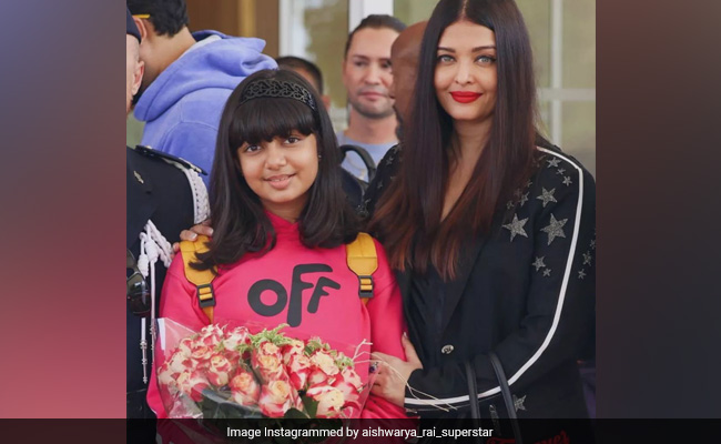 Here's a picture of Aishwarya Rai Bachchan with daughter Aaradhya from Cannes.