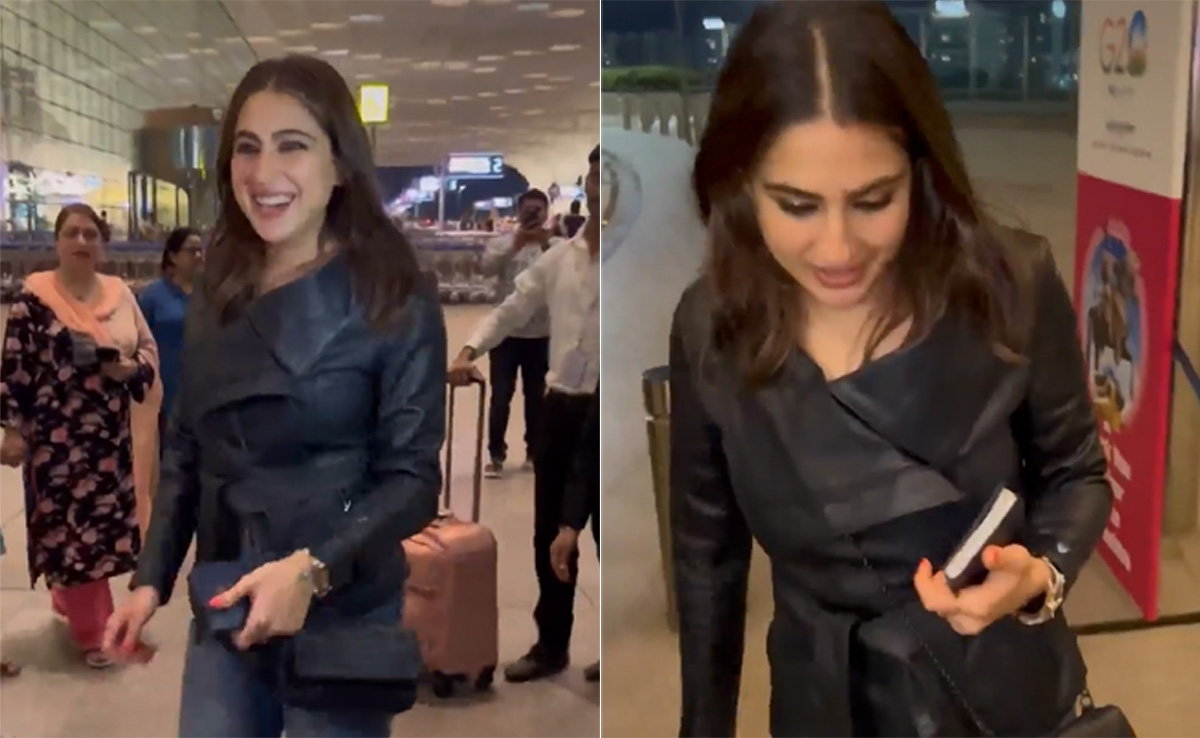 Sara Ali Khan, who is the daughter of actors Saif Ali Khan and Amrita Singh, opted for a black jacket for her travel.