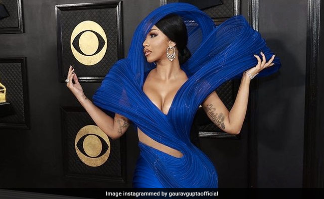The Grammy Awards 2023 was all things glamorous. Celebrities kept their best fashion foot forward when they walked the red carpet on Sunday night. Oh boy. They nailed it and how. Oh, and, the outfit that stole our attention was worn by none other than Cardi B. The singer is known for her out-the-box fashion outing and she didn't disappoint us this time. Cardi B picked an electrifying blue gown by Indian designer Gaurav Gupta. The perfectly sculptured cut-out dress ticked all the boxes. The snug satin bodice added more drama to the outing. Don't miss the hooded sequin finish. The singer allowed the ravishing dress to do all the talking and went with a pair of diamond earrings and rings. Her hair was secured in a clean and neat low-rise bun.