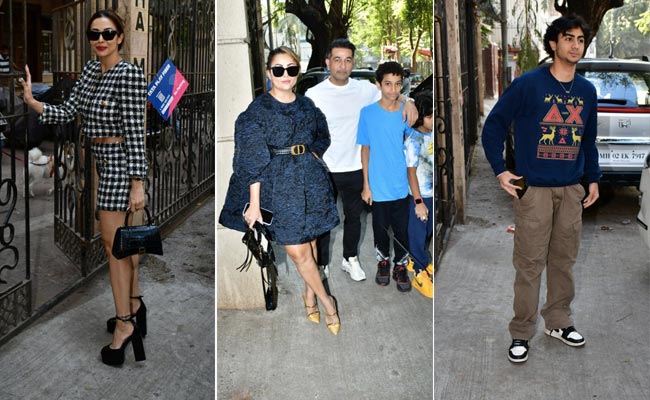 Malaika Arora is celebrating Christmas 2022 with her son Arhaan Khan, sister Amrita Arora and parents Joyce Polycarp and Anil Arora. The actress was recently pictured at her parents' house in Bandra, Mumbai. She looked beautiful in a black and white co-ord set paired with black sunglasses and styled her hair into a bun. Her son Arhaan looked dapper in a blue sweatshirt paired with cargo pants. He waved at the shutterbugs before leaving. Amrita Arora arrived with her husband Shakeel Ladak and sons Rayaan And Azaan.