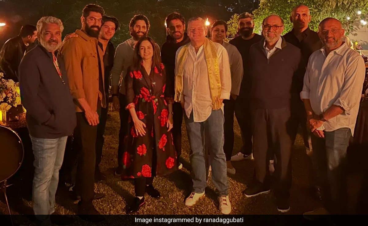 Netflix CEO Ted Sarandos is having a great time in India. From attending the screening of Zoya Akhtar's The Archies to meeting superstar father-son duo Chiranjeevi and Ram Charan, Ted Sarandos' itinerary looks all things fun. Rana Daggubati has shared a star-studded photo from the "fun evening" with Ted Sarandos and Monika Shergill, who is Vice President (Content) for Netflix India. In the pic, we can spot SS Rajamouli, Venkatesh Daggubatti, Naga Chaitanya, Dulquer Salman, Rana Daggubati and his father Daggubati Suresh Babu. Phew. Along with the picture, Rana Daggubati said, "A fun evening at home with friends, family, and Netflix."