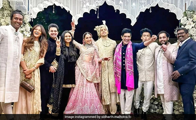 Kiara Advani and Sidharth Malhotra's wedding is the gift that keeps giving. New pictures from the couple's Jaisalmer festivities went viral on Thursday and show the bride and groom posing with designer Manish Malhotra and his team. Manish Malhotra designed both Kiara's pink wedding lehenga as well as Sidharth's cream sherwani. Kiara Advani and Sidharth Malhotra married in Rajasthan earlier this month – the wedding venue was Suryagarh Palace near Jaisalmer and was attended by only the couple's close family and friends. As the official wedding couturier, Manish Malhotra was there as well.