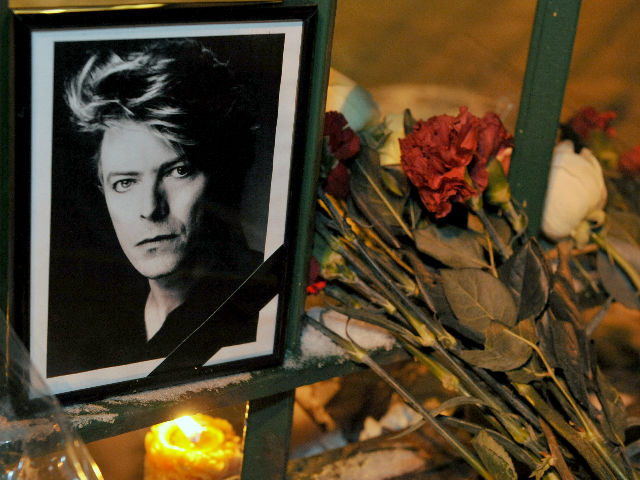 A portrait of David Bowie laid during a memorial event in St Petersburg. (Image courtesy: AFP)