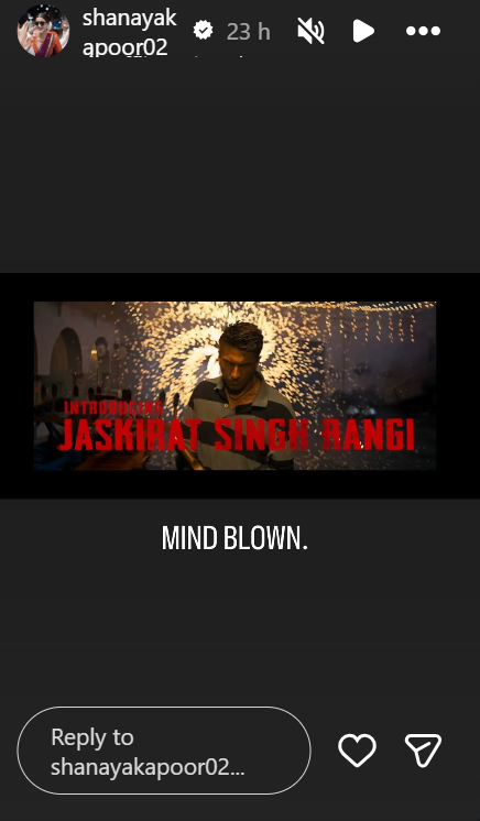 Shanaya Kapoor took to her Instagram handle to share how she feels after watching Ranveer Singh's Dhurandhar 2.