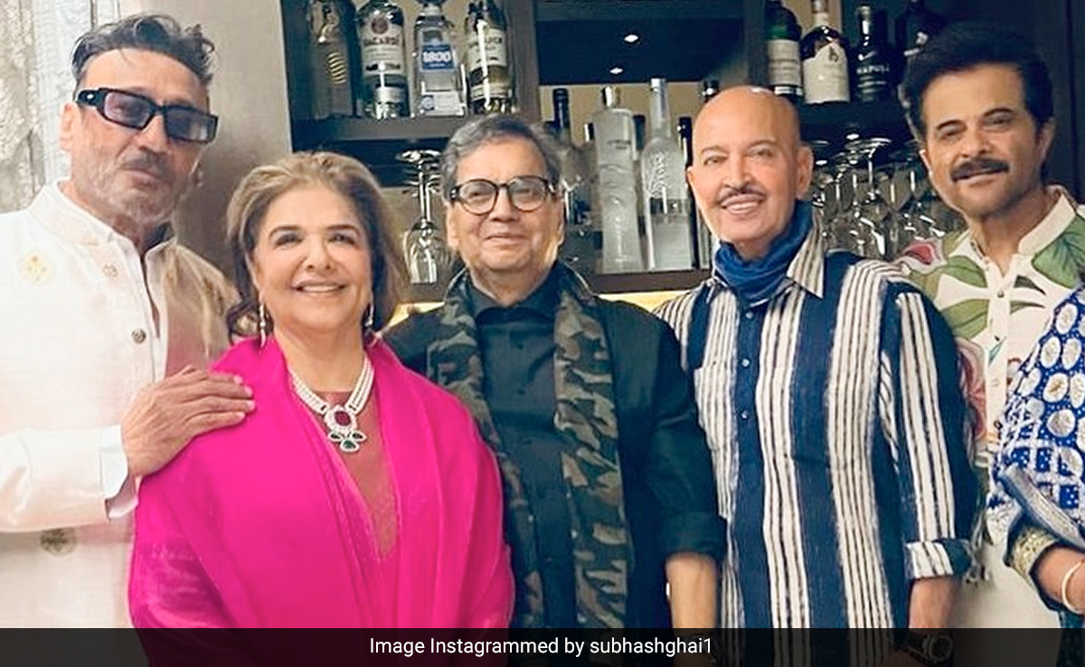Festive fervour has gripped Bollywood and how. Veteran filmmaker Subhash Ghai shared a picture from Ramesh Taurani's Diwali bash held on Tuesday in Mumbai. The picture features Subhash Ghai, Rakesh Roshan, wife Pinkie Roshan, Jackie Shroff, Anil Kapoor. They can be seen smiling for the camera. Subhash Ghai called Anil Kapoor and Jackie Shroff "Mere do anmol ratan (Two of my precious jewels)." For context, Anil Kapoor and Jackie Shroff acted in Subhash Ghai's directorial Ram Lakhan. Mere Do Anmol Ratan is a song from the film. He wrote in the caption, "Mere do anmol ratan. Jackie Anil with my great friend Rakesh Roshan and bhabhi Pinkie Roshan at Diwali party by Mr and Mrs Ramesh Taurani. Was a great fun to stay with moments of nostalgia by every one and a super energy to restart." He added, "Big screen wholesome entertainment is back to rule at the box office- was a whisper over a glass of wine in a grand party of film celebrities. Thank you Tauranis." Take a look at the post here: