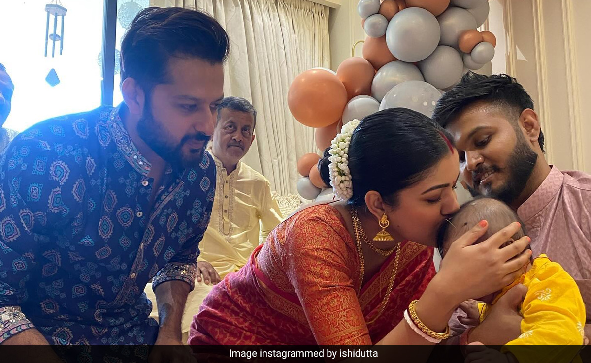 Ishita Dutta and Vatsal Sheth, who became parents to a baby boy Vaayu last year, shared pictures from his Annaprashan ceremony (Rice Ceremony) on Instagram. The couple celebrated the special occasion with friends and family. In the first picture shared, Ishita can be seen kissing her baby boy on his forehead. In a family picture, Ishita's sister Tanushree Dutta can be spotted. For the occasion, Vatsal Sheth wore a kurta while Ishita chose a saree. Sharing the pictures they wrote in the caption, "Happy 6 months my baby.Vaayu's Annaprashan ceremony. For those who don't know it's a Bengali traditional ceremony which also known as the rice ceremony where solid food is introduced to the baby by his mama for the first time..Off course the baby is too small to eat so we only touch the food to introduce him to flavours." Bobby Deol shared a bunch of heart emojis in the comments section. Take a look: