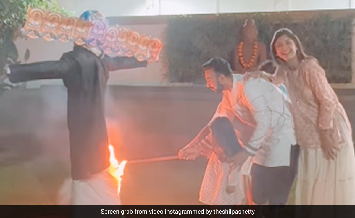 Shilpa Shetty documented moments from her Dussehra festivities at home and shared it on social media. She posted a video of herself along with husband Raj Kundra and their kids Samisha and Viaan burning a Ravana effigy. Shilpa captioned the post, "Eeshwar kare ki dukhon ka Ravan aur museebaton ke Mahisasur ka ,aapke jeevan se sada ke liye nikaas ho. Un dono ka naash ho aur aapka Vikas ho. Dussera aur Vijaya Dashami ki hardik shubhkamnayein. (May God make the way of sorrows and the realization of troubles be removed from your life forever. May both of them be destroyed and your progress. Best wishes of Dussera and Vijaya Dashami)."