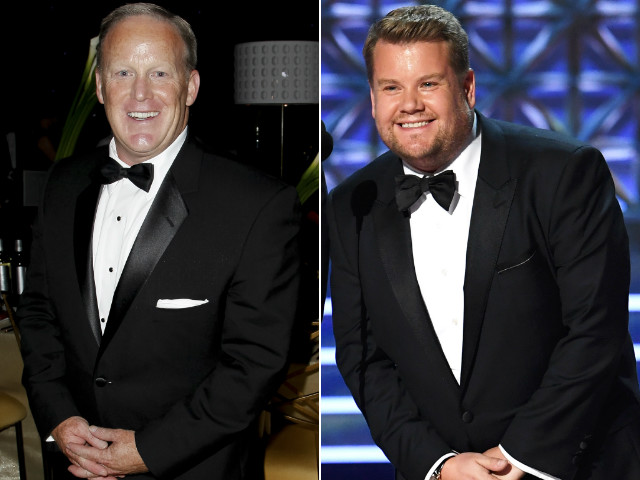 Sean Spicer and James Corden at the Emmys 2017 (courtesy AFP)