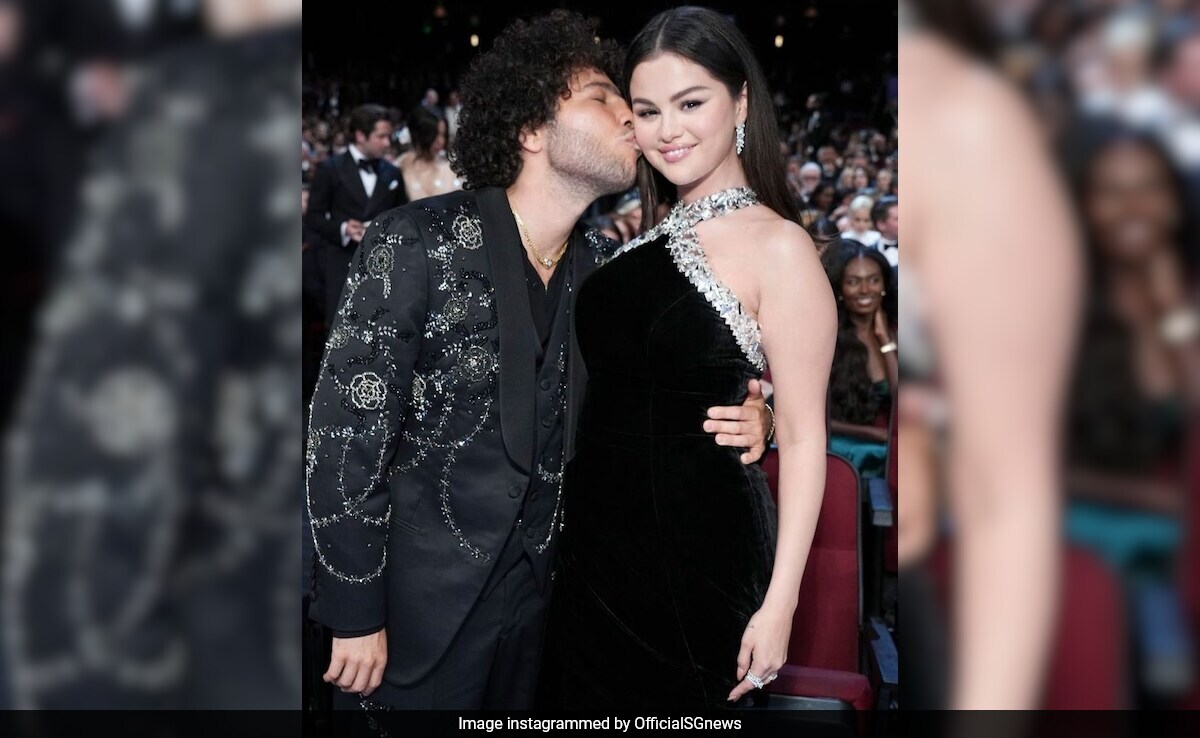 Selena Gomez and Benny Blanco lit up the 76th Primetime Emmy Awards and how. Although the couple didn't walk the red carpet together on television's biggest night, they were pictured spotting some mushy moments inside the venue. Selena looked stunning as ever in a custom black velvet Ralph Lauren Collection gown, featuring a hand-embellished pave neckline and a flowing train. She accessorised her look with Tiffany & Co. jewellery, including drop earrings, bracelets and several rings.