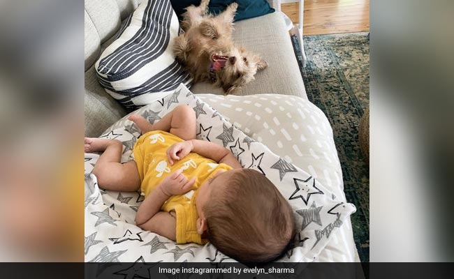 Evelyn Sharma recently shared adorable photos of her daughter Ava Bhindi and their per dog. In the photos, Ava is seen lying on the sofa and is dressed in a yellow onesie. Ava's face is not visible in the photos and she is facing towards their pet dog, who is also posing for the camera. Sharing the photos, Evelyn Sharma has written, "My two little goofballs," followed by red heart and love-struck emojis. Evelyn got married to Tushaan Bhindi in May 2021 in Brisbane, Australia and gave birth to her daughter in November 2021. Evelyn is yet to share a complete photo of Ava, but she often shares her glimpses.