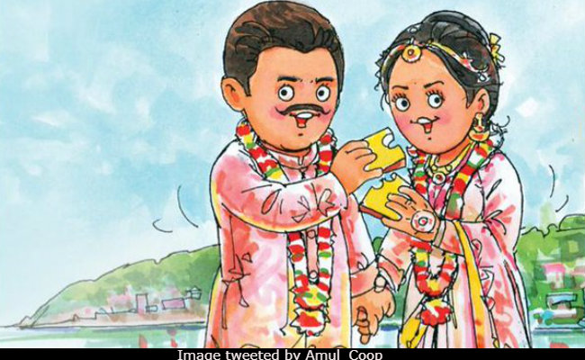 First, badhaai ho to newly-wed couple Deepika Padukone and Ranveer Singh! The just-married couple were also congratulated by Amul, who have always impressed with their topical graphic posters. In the creation, the Amul girl representing Deepika can be seen draped in light pink while a cartoon version of Ranveer is treating her to a piece of butter. A colourful depiction of Lake Como has been pasted as the background for the frame, which comes with these words: ""Ranveer not Singhle anymore!" and "The Deepik-tion of taste!" So cute.