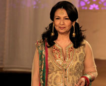 She has always walked the ramp wearing elegant saris but for the first time yesteryear actress Sharmila Tagore was seen wearing a ghagra teamed up with a long netted jacket.