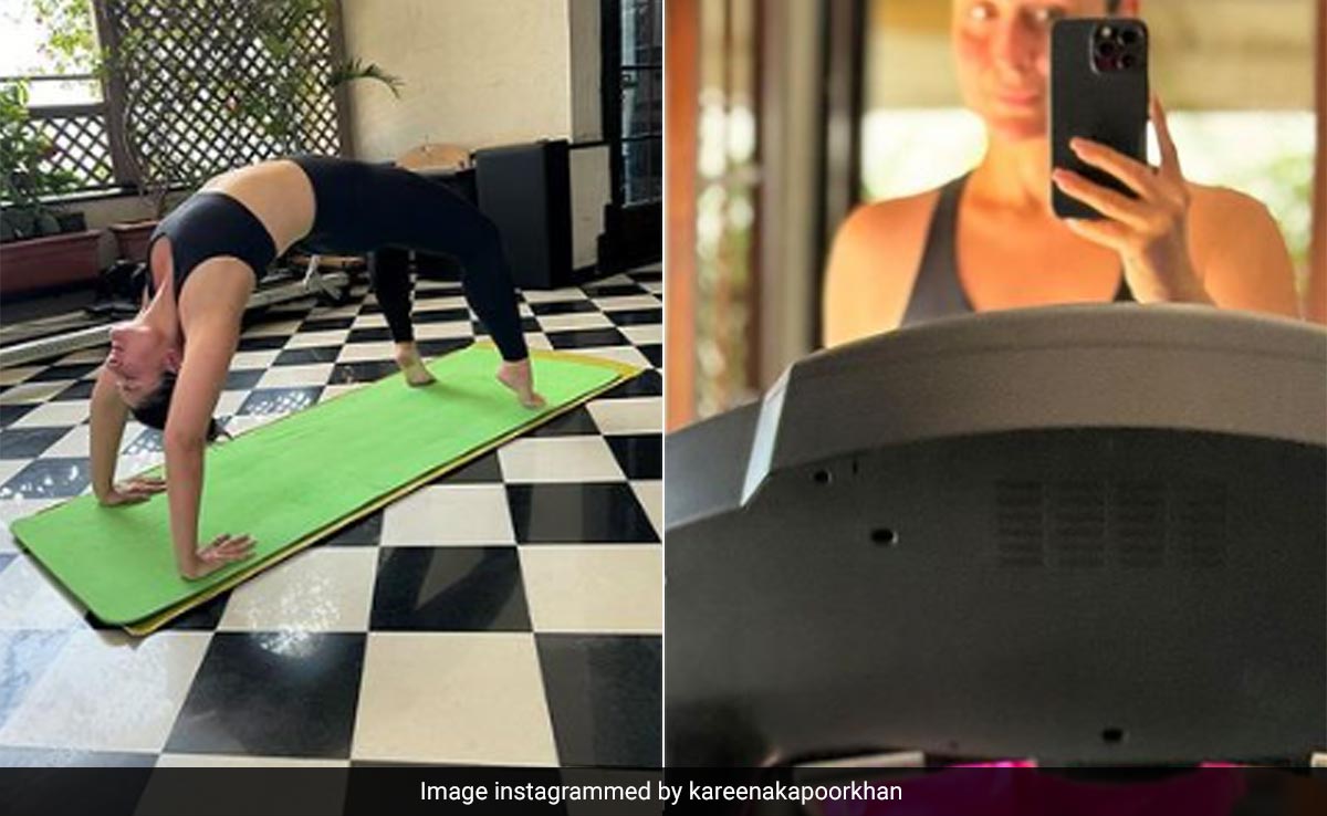 Kareena Kapoor is setting fitness goals - one post at a time. The actress, who swears by yoga, shared a glimpse of her sessions lately in her latest Instagram entry. Kareena Kapoor shared an album from her May diaries - it has fam-jam photos with Saif Ali Khan and sons Taimur, Jeh. The album also has pictures from Kareena Kapoor's yoga diaries. In one the pictures, she is seen doing Chakrasana. In another picture, she is seen clicking a selfie on a treadmill. "May-be it's time for a photo dump," Kareena Kapoor captioned the post. Saif Ali Khan's son (with his ex-wife Amrita Singh) Ibrahim dropped heart emojis in the comments section. Zahan Kapoor dropped heart-eyed emojis. Kareena's sister-in-law Saba Ali Khan dropped heart emojis as well.