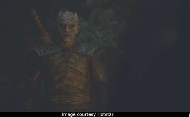 In a parallel segment, the Army of the Dead breaches the wall of Winterfell and all attempts to light up the trenches go in vain due to an unprecedented snowstorm. Again, Melisandre comes to their rescue by starting a fire through her spell, which momentarily contains the White Walkers outside Winterfell. After a while, the Army of the Dead, figures out a way to breach the lit trenches. Everyone prepares to man the wall as the White Walkers try to crawl their way inside. Arya Stark joins the battle and she wields her weapon (recently made by Gendry) with valour and chutzpah. In a moment of absolute bravery, Lady Mormont kills a giant White Walker.