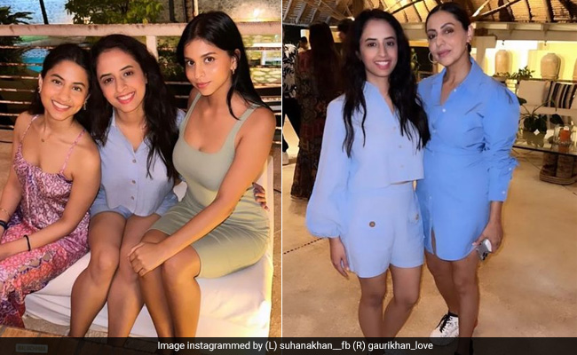 Pictures of Gauri Khan and daughter Suhana from a get-together with family and friends are trending big time on social media. The pictures happen to be from Alibaug. The aforementioned photos feature Gauri and Suhana Khan with Gauri's mom Savita Chhibber, her family members, Priya Khurana and other friends. The photos have been curated by fan pages on social media. For the party, Suhana Khan opted for a grey bodycon dress, while Gauri Khan wore a blue shirt dress which she paired with white sneakers.