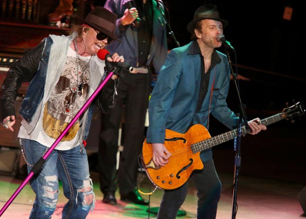Axl Rose and Tommy Stinson of Guns N' Roses perform at the Bridge School Benefit Concert at the Shoreline Amphitheatre on Saturday, Oct. 20, 2012, in Mountain View, Calif. (Photo: Associated Press)