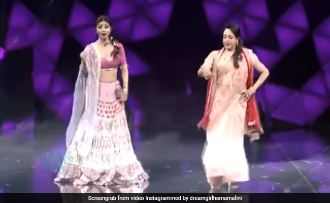 First, let us thank veteran actress Hema Malini for gifting us a treasured sight. What are we gushing about? It is a video shared by Bollywood's Dream Girl on Instagram. Why is it so special, you ask? Here, we see the actress dancing to a song, originally performed by her husband, actor Dharmendra. She sets the stage on fire by replicating Dharmendra's iconic steps from the track - Jat Yamla Pagla Deewana. The song is from the 1975 film Pratiggya, which featured the star couple in crucial roles. It was sung by Mohammed Rafi. In the video, which is from a reality show, Hema Malini is joined by actress Shilpa Shetty. Well, the caption also needs your attention. Read it, "Dharam Ji ke steps karne ka maza hi kuch aur hai [There's a different kind of joy in performing Dharam Ji's steps] Enjoyed every moment of this performance with Shilpa Shetty." Hema Malini and Dharmendra's daughter, actress Esha Deol dropped various smileys and thumbs up emojis in the comments section. The clip is here.