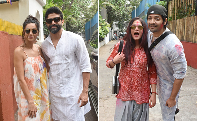 Javed Akhtar and Shabana Azmi held their annual Holi party on Tuesday, as they have for years. This year, though, only Javed Akhtar hosted the celebration – Shabana Azmi is filming season 2 of Halo in Budapest. Nevertheless, a good time was had by all at the family residence in Mumbai, Janki Kutir. Javed Akhtar's son Farhan Akhtar and wife Shibani Dandekar were top of the guest list – he wore Holi whites, she wore a colourful tie-dyed maxidress. See pictures of them here: