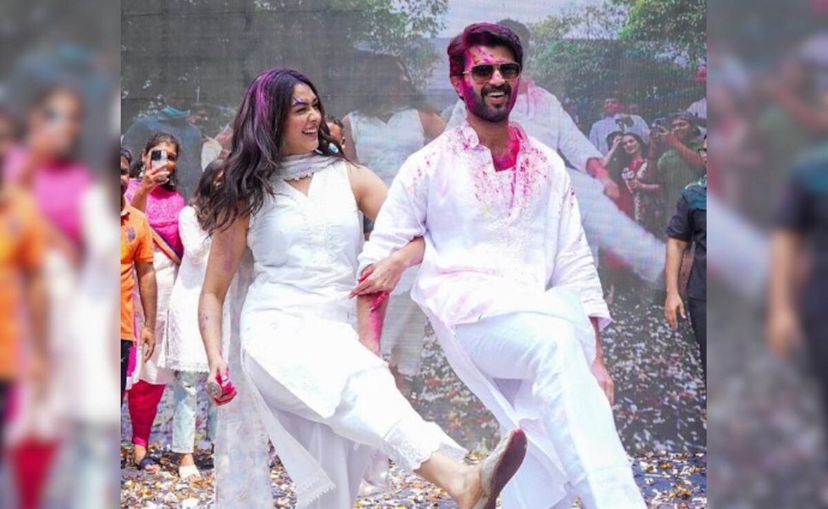 Family Star co-actors Vijay Deverakonda and Mrunal Thakur had a fun-filled Holi with their fans in Hyderabad. The actors, who are currently busy with the promotion of their upcoming film, recently attended an event in Hyderabad, where they played Holi and entertained the crowd with a dance performance. Both actors were seen wearing white outfits. Vijay could be spotted in a kurta and pyjama while Mrunal could be seen a churidaar and kurta. Videos of their performance and celebration were shared on social media.