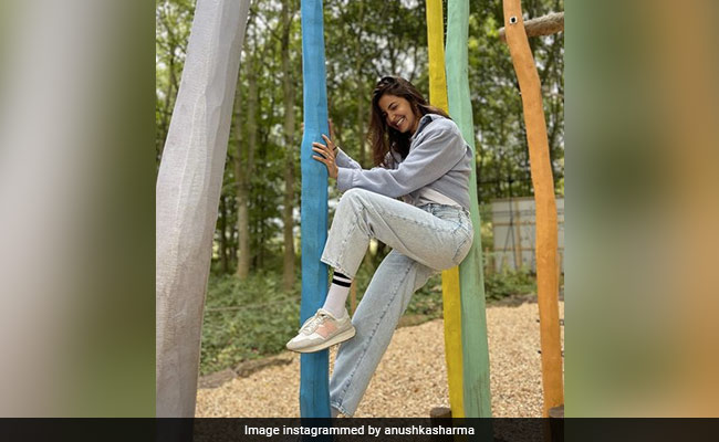 Anushka Sharma, who is busy shooting for Chakda Xpress in London, always manages to take some time out for her family. On Saturday, the actress took her daughter Vamika to a park, but it seems the actress had more fun than her daughter. She shared a picture of herself on Instagram in which she can be seen goofing around in a park. The actress looked pretty in a grey hoodie paired with jeans and sports shoes. She left her hair loose and sported a no-makeup look. In the captions, she wrote, "I had a great day at the play park that we took our daughter to," followed by a laughing emoticon.